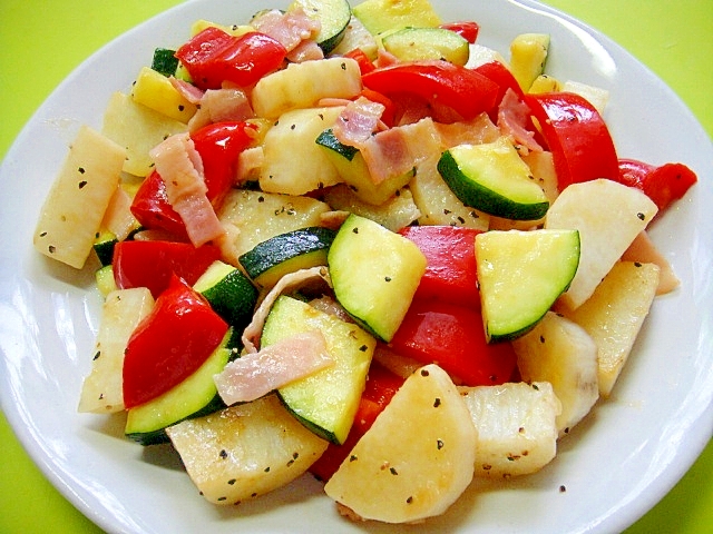 長芋とズッキーニパプリカベーコンのコンソメ炒め レシピ 作り方 By Mint74 楽天レシピ